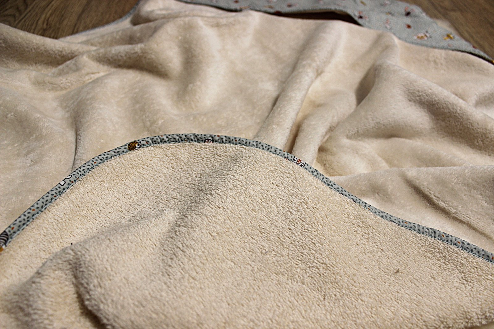La Toalla con Capucha de Algodón Orgánico envuelve a tu bebé con suavidad y calidez después del baño.